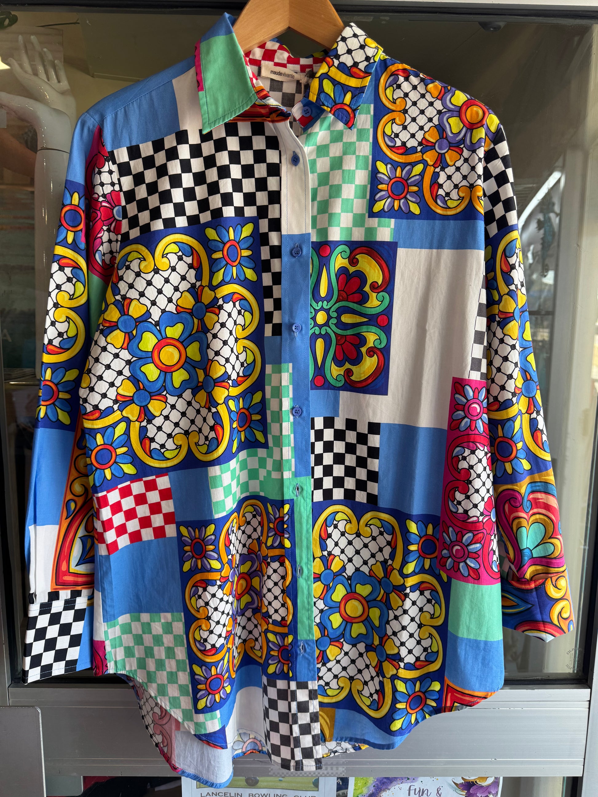 Perfect for pairing with jeans, linen pants, or flowing skirts—wherever the day takes you, Carretto carries a little holiday in its print.